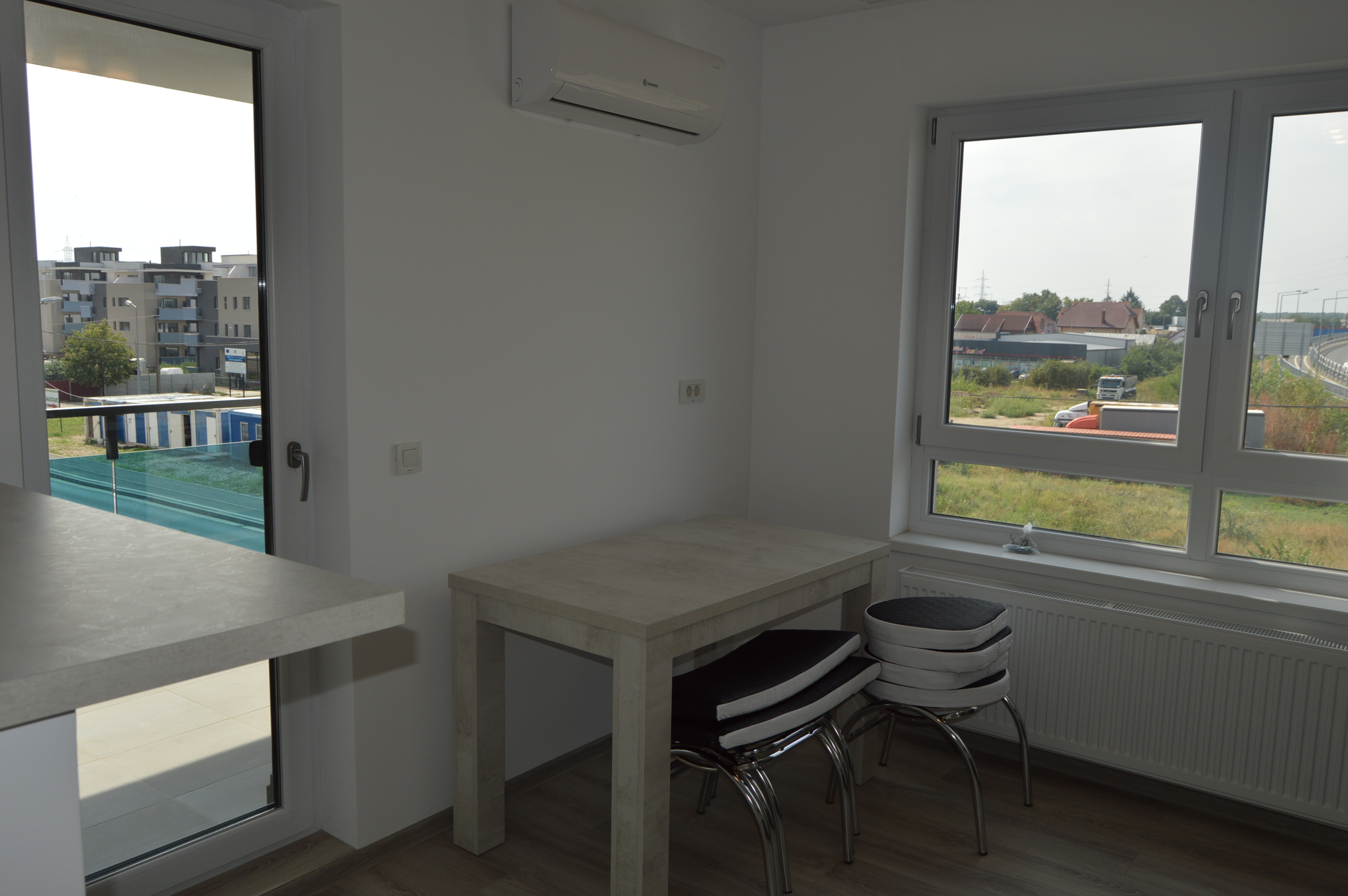 Casa Regal Imobiliare offers you for rent a generous 2-room apartment, located in the Victoria Residential complex, on the 2nd floor, in a quiet and well-maintained building. Total area: 72 sq m Partitioning: - 2 rooms (open space living room with hall + bedroom); - Fully equipped kitchen; - Modern bathroom; - 2 balconies. The apartment is fully furnished, benefits from plenty of natural light and is equipped with air conditioning for increased comfort in summer. The spaces are well organized, offering both comfort and functionality. Bonus: The apartment is rented with a parking space included in the price, an important advantage in a residential area. Ideal for a couple, a single person or even a small family who wants peace, comfort and all modern amenities. Available from August 1st. Rent: EUR 500 / month For more information or to schedule a viewing, do not hesitate to contact us!