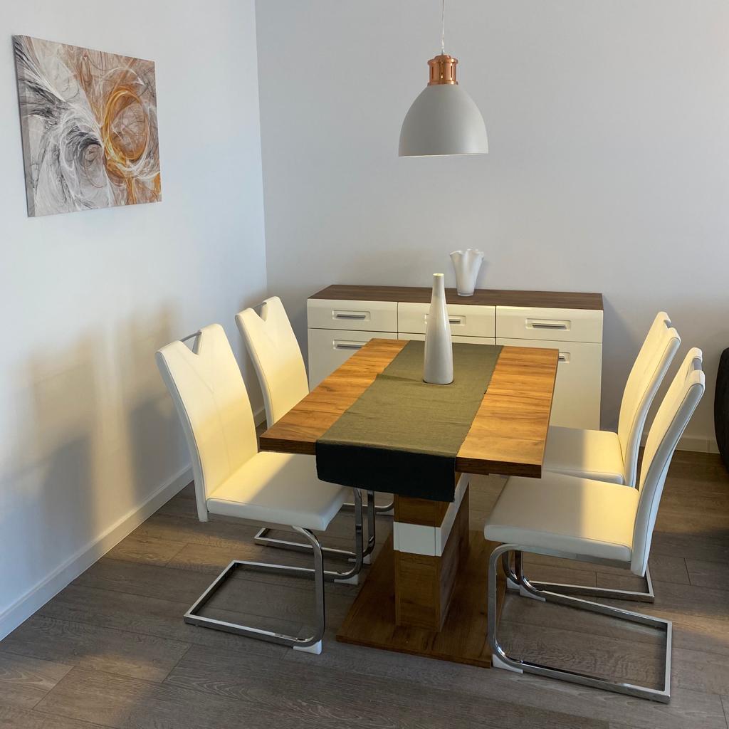 The kitchen is fully equipped and furnished, with all the necessary equipment and utensils to prepare your favorite meals. Here you will also find a balcony, where you can enjoy a cup of coffee in the morning or spend summer evenings outdoors, admiring the view of the city.