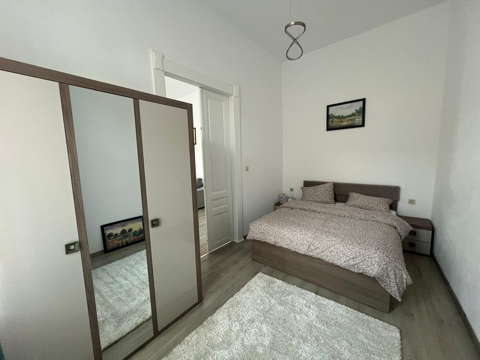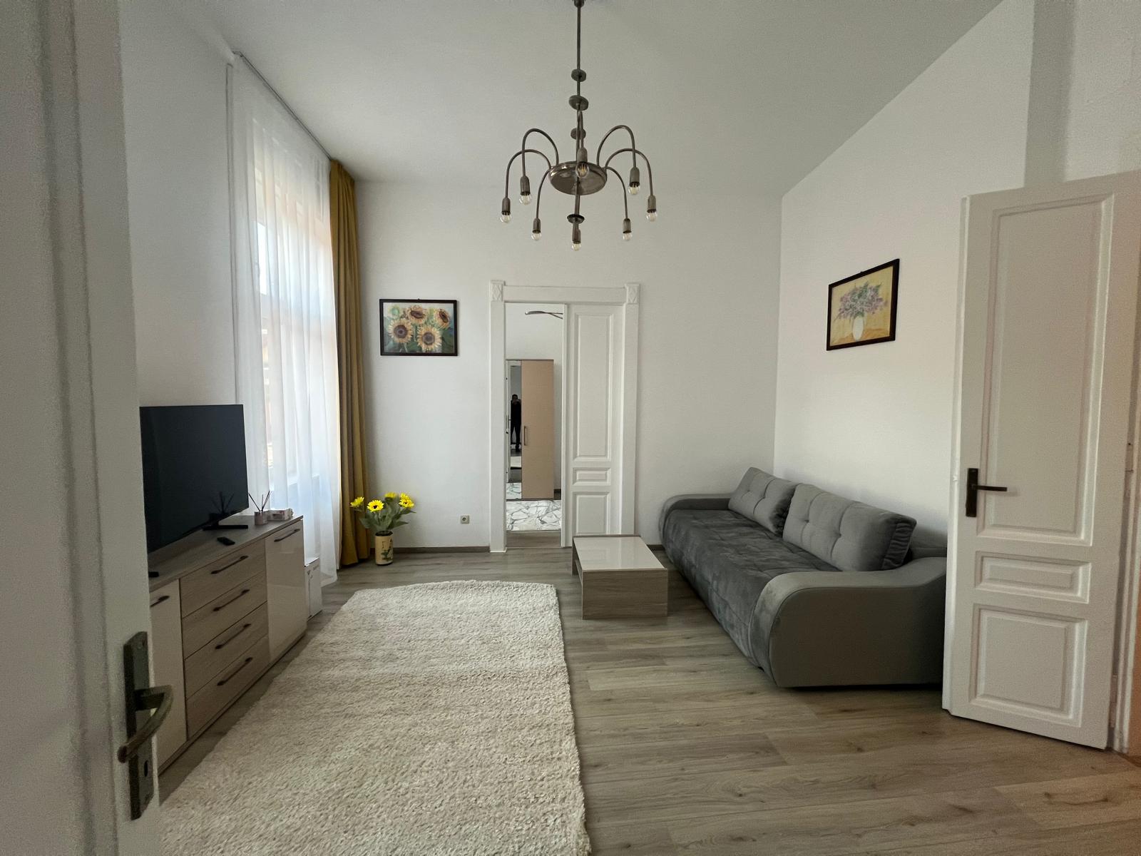 Rent a refined apartment in the heart of the city! Located in an exclusive central area, this newly renovated apartment offers you an elegant and distinguished environment. Its high and bright rooms create a welcoming atmosphere, perfect for those who appreciate classic style and good taste. Every detail is carefully highlighted, offering you a special home, where you will truly feel at home. •. Romanian Army Area •. Apartment 83 m.p. • Living room, 2 bedrooms, 2 bathrooms • Closed kitchen plus storage space • Free parking spaces available • Gas underfloor heating • Ambient thermostat Price: 600 euros/month Don't miss the opportunity to live in a truly special property, in the city center! Tel: 0771.20.30.20