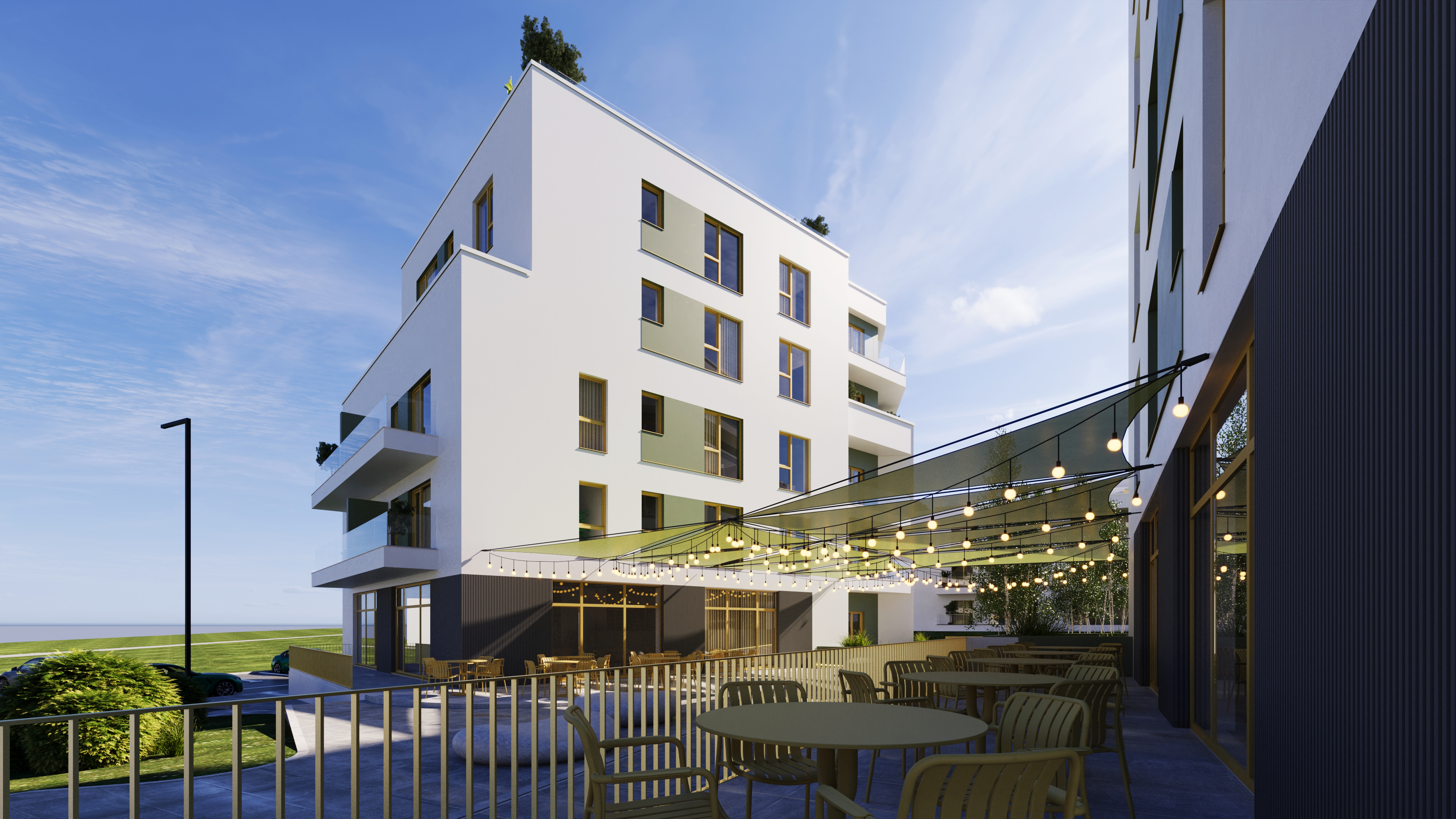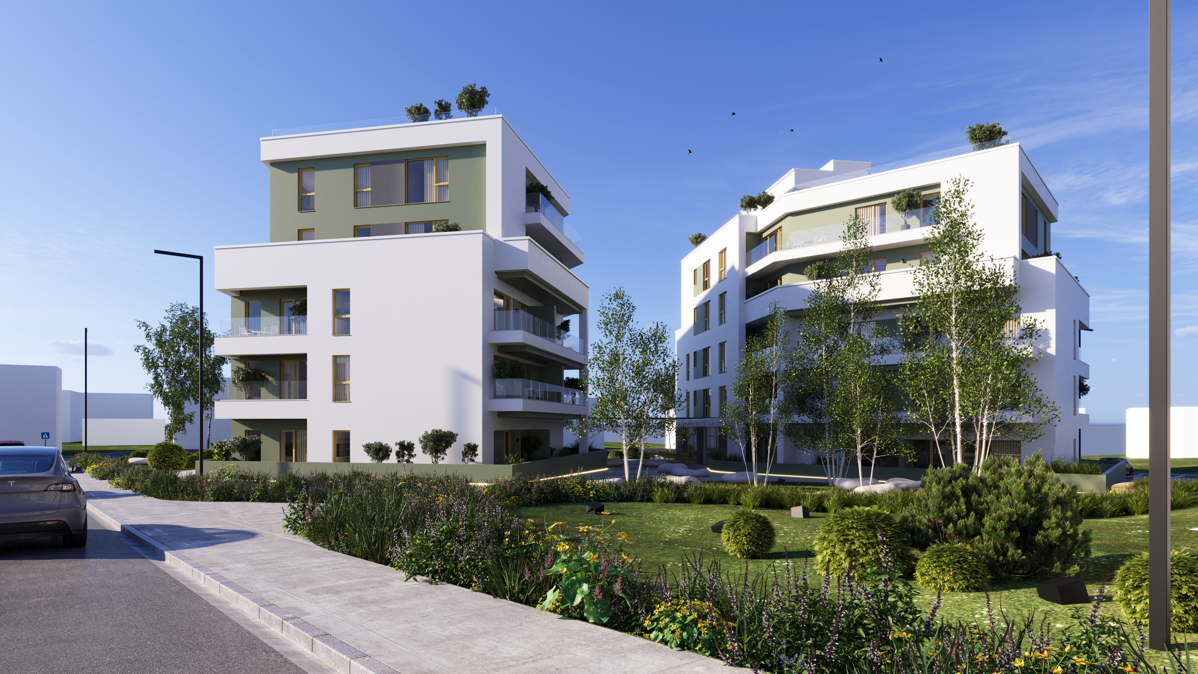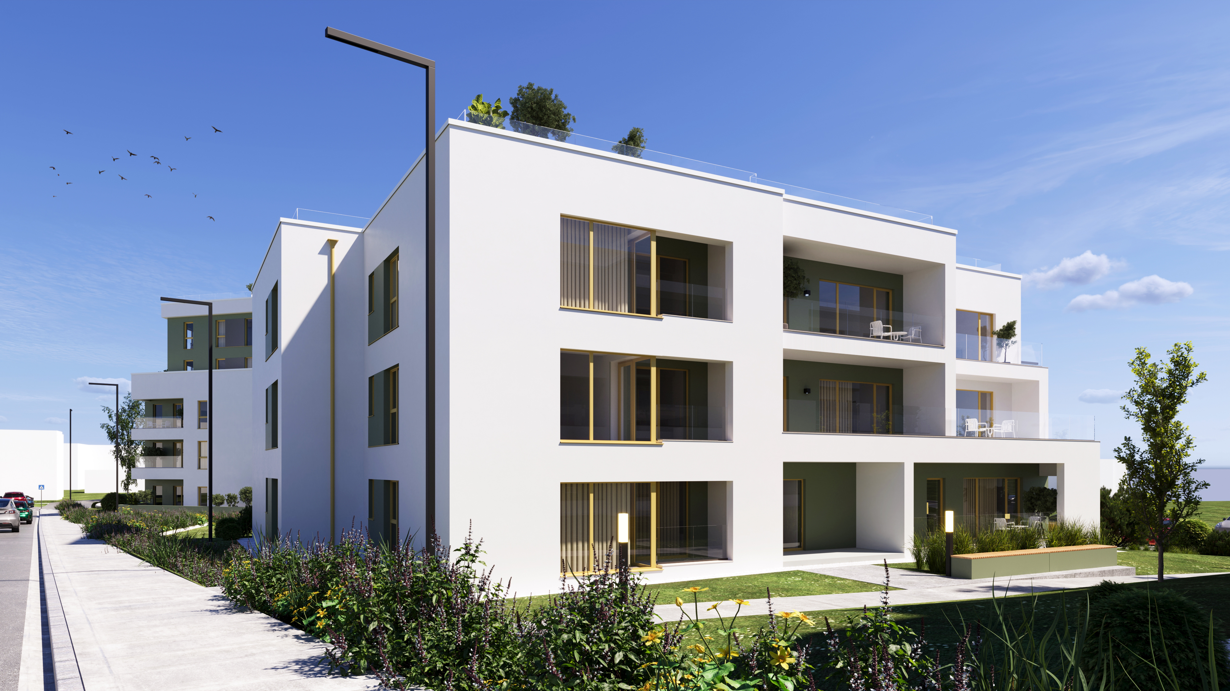 Ansamblul este alcătuit din 6 clădiri de locuințe colective, cu regim de înălțime P+4E, cu spații comerciale si parcari dispuse la nivelul solului. Nivelul curent adăpostește apartamente cu 1, 2 sau 3 camere, fiecare apartament beneficiază de un balcon , logie sau terasă. In prima faza se vor construi 3 corpuri de cladiri (corpul A, corpul B si corpul C) cu termen de predare decembrie 2026. În total cele 3 corpuri vor contine 60 de apartamente.